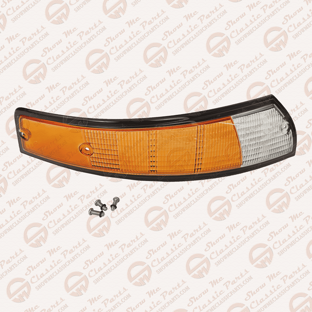 Restore your classic 911’s European look with this authentic right front turn signal lens in black trim (1969-1973). The amber and white lens matches original Euro styling and fits seamlessly for concours restoration or enthusiast upgrades.